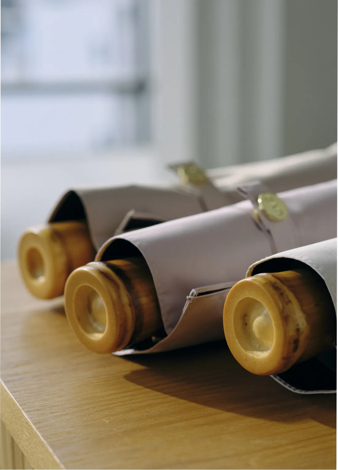 つゆ先と石突き、ボタンのゴールドパーツで